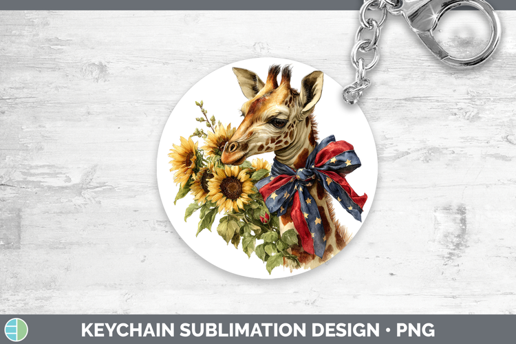 Animals Sunflower Patriotic Giraffe Keychain Sublimation Key