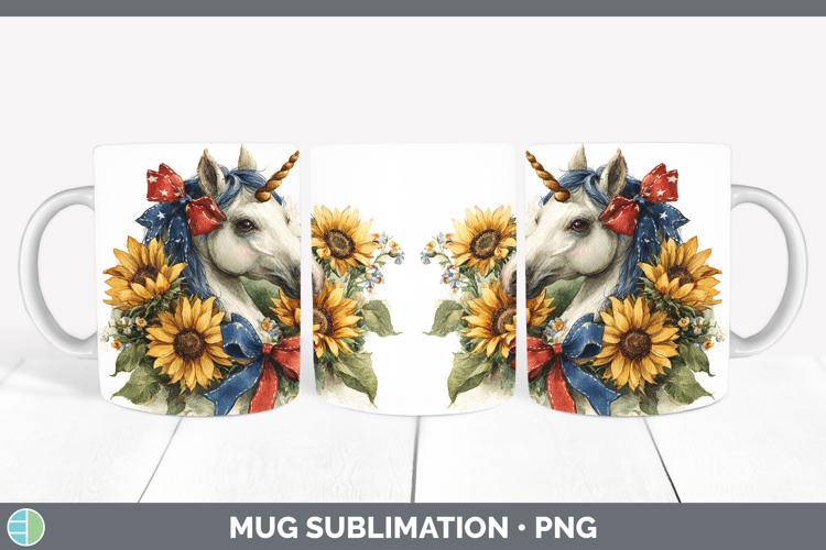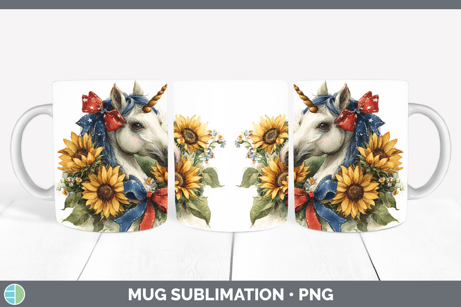 Animals Sunflower Patriotic Unicorn Mug Wrap Sublimation Cof