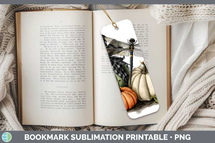 Animals Autumn Pumpkin Dragonfly Bookmark Sublimation Printa
