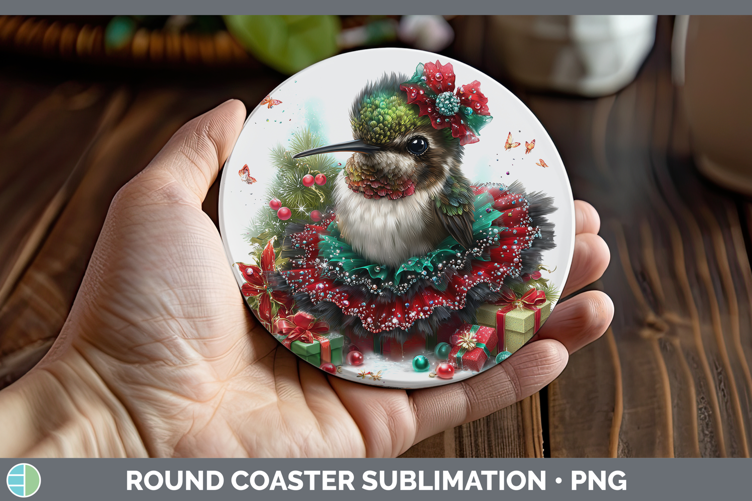 Animals Christmas Hummingbird Round Coaster Sublimation Coas