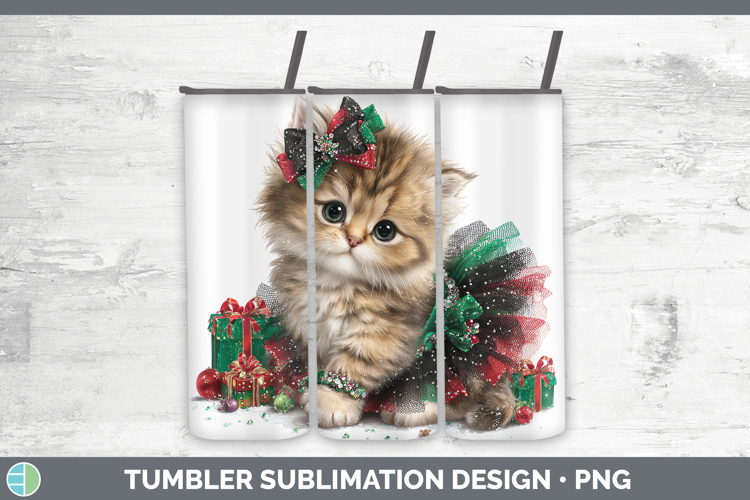 Animals Christmas Kitten Tumbler Sublimation 20 oz Skinny Tu