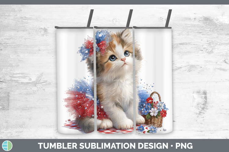 Cats Patriotic Calico Cat Tumbler Sublimation 20 oz Skinny T