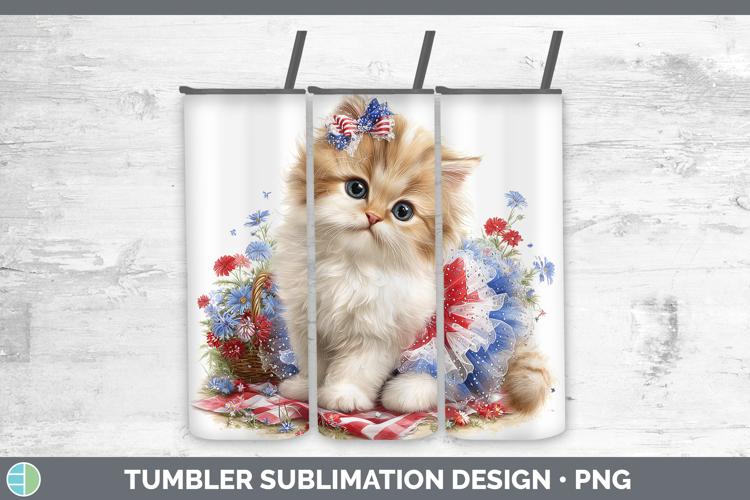 Cats Patriotic Persian Cat Tumbler Sublimation 20 oz Skinny