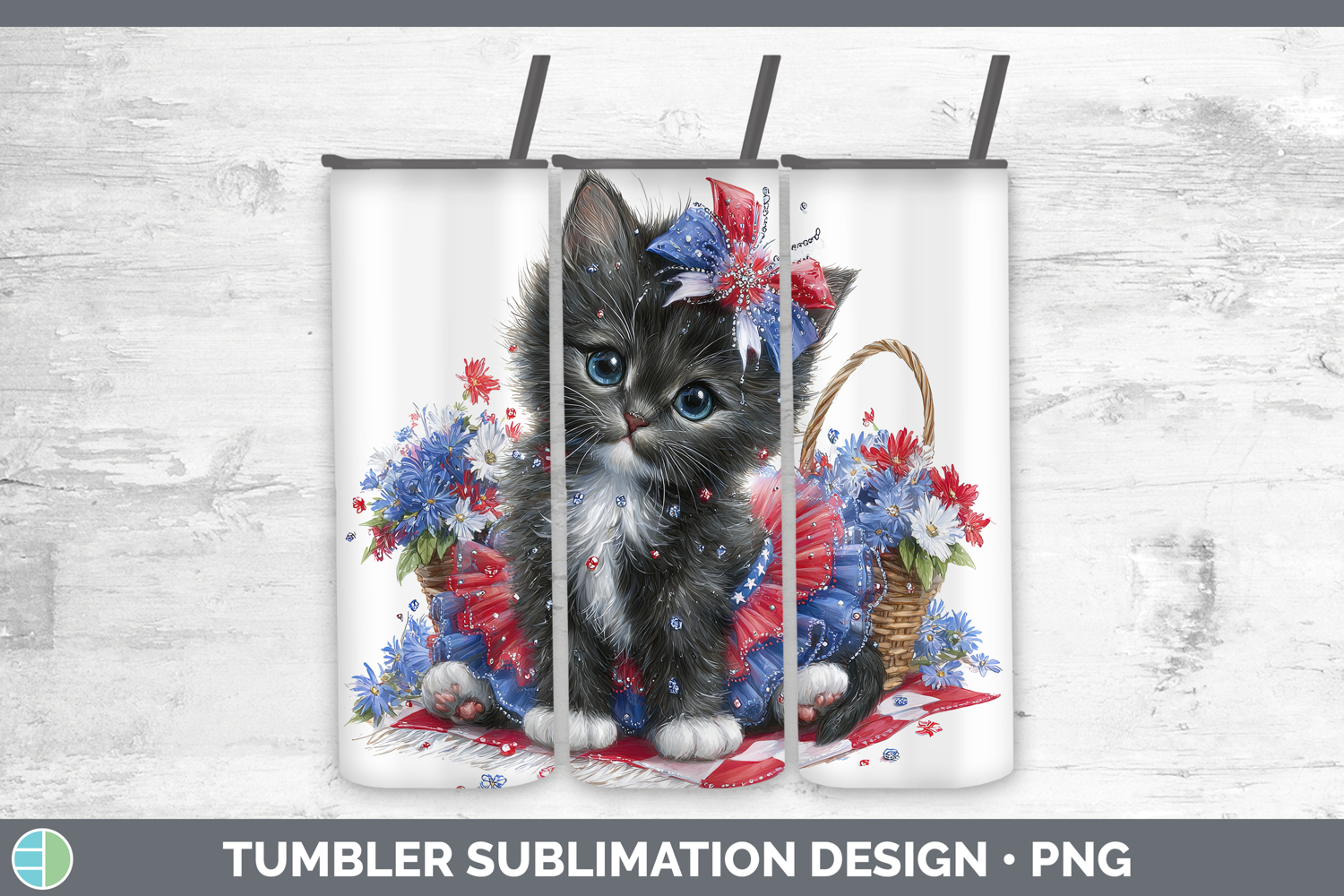 Cats Patriotic Tuxedo Cat Tumbler Sublimation 20 oz Skinny T