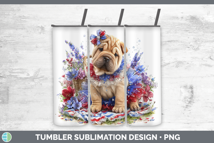 Dogs 01 Patriotic Shar Pei Tumbler Sublimation 20 oz Skinny
