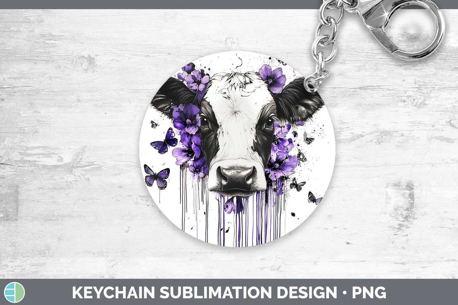 Similar Design Products to Animals Purple Drips Cow Keychain Sublimation Keyring Design