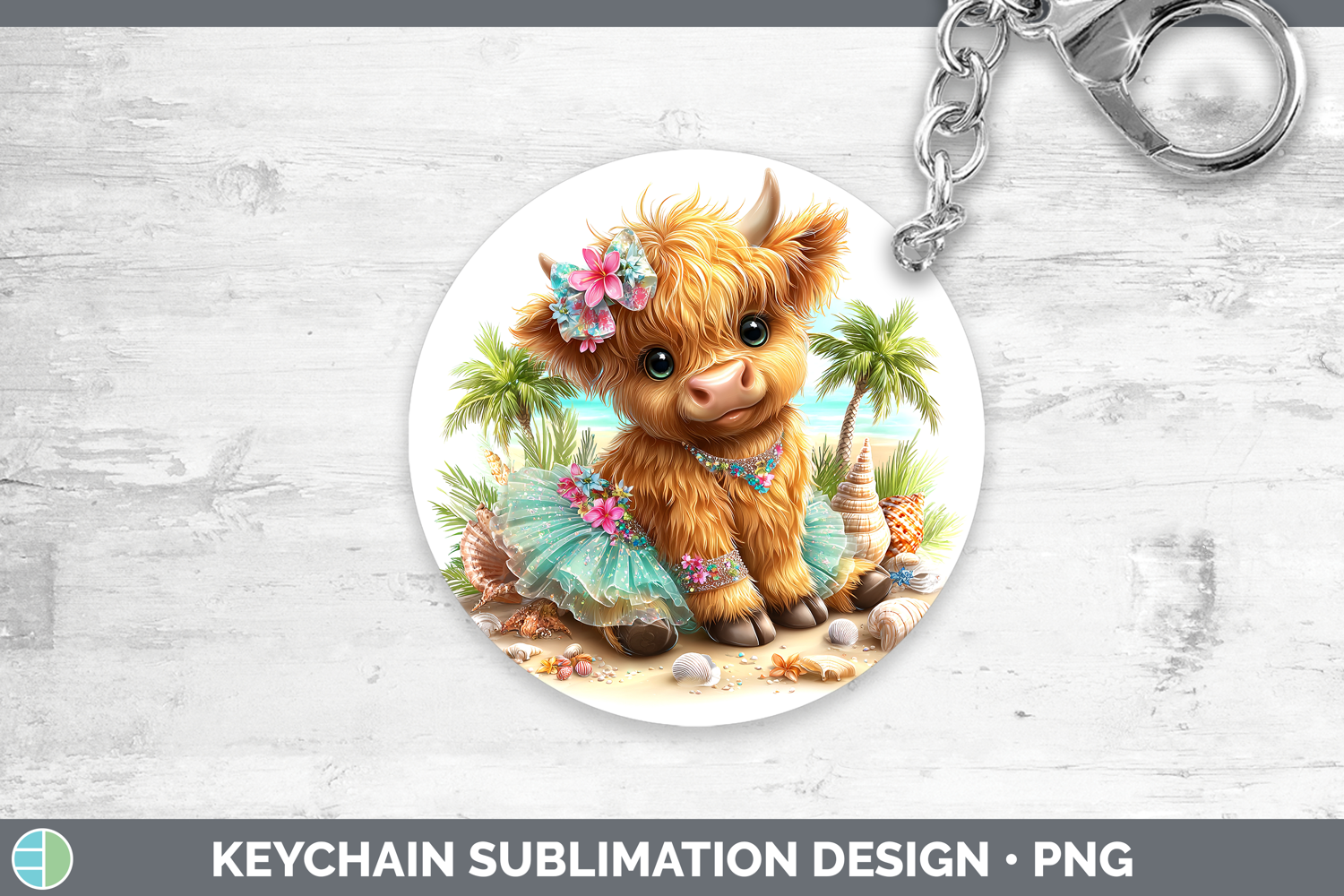 Animals Summer Beach Highland Cow Keychain Sublimation Keyri