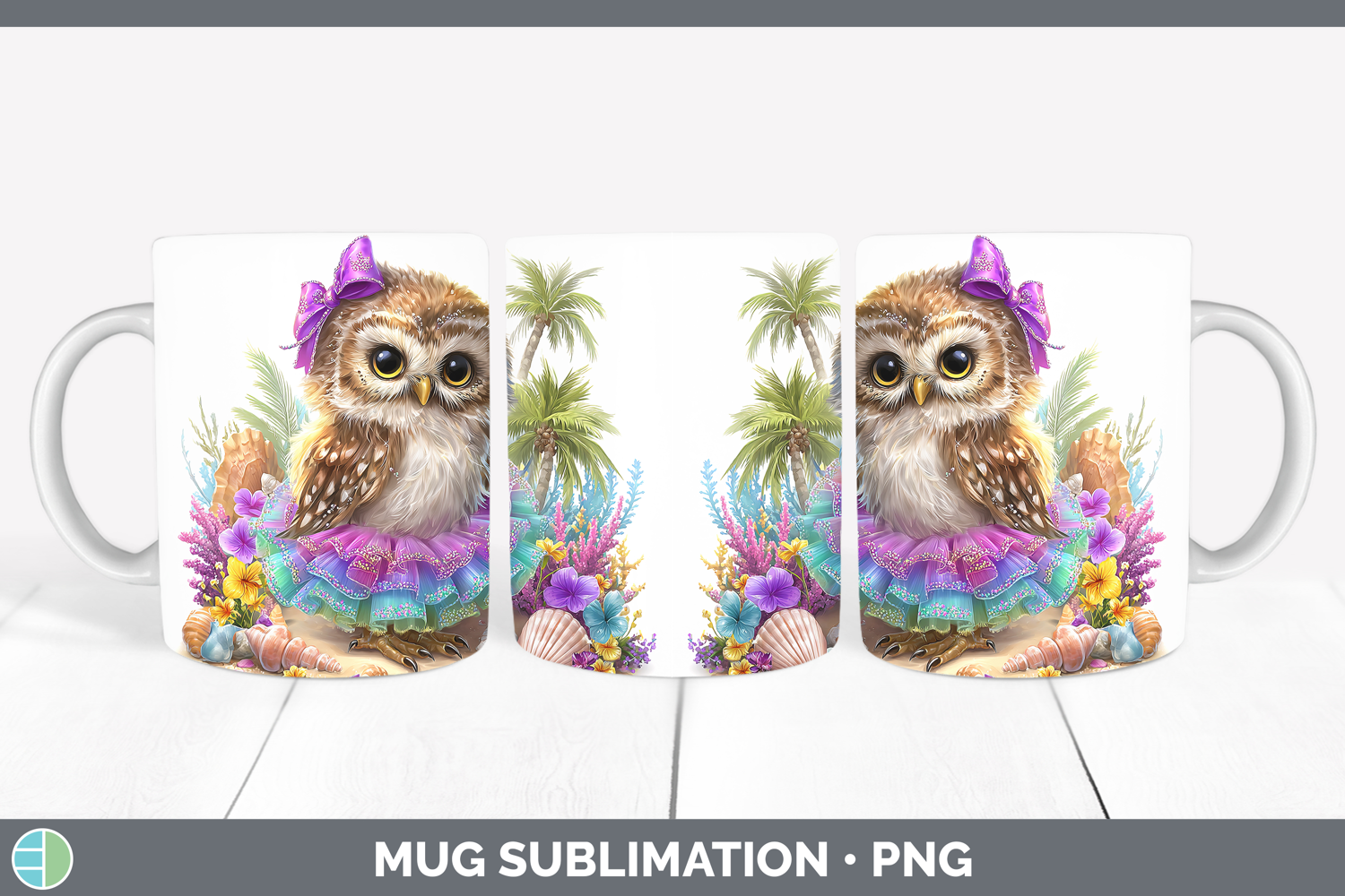 Animals Summer Beach Owl Mug Wrap Sublimation Coffee Cup Des