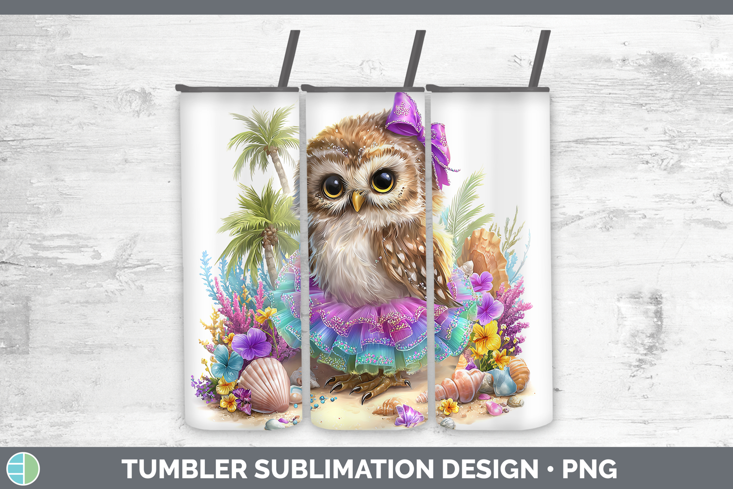 Animals Summer Beach Owl Tumbler Sublimation 20 oz Skinny Tu