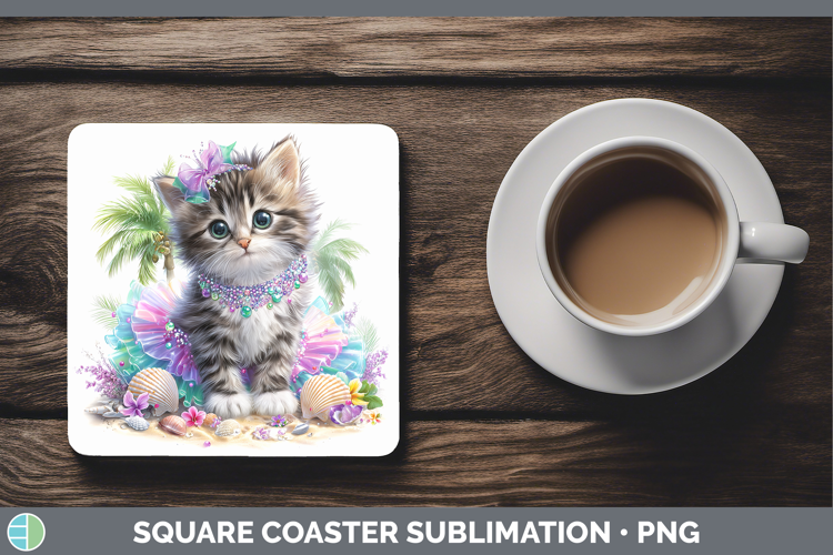 Animals Summer Beach Kitten Square Coaster Sublimation Coast