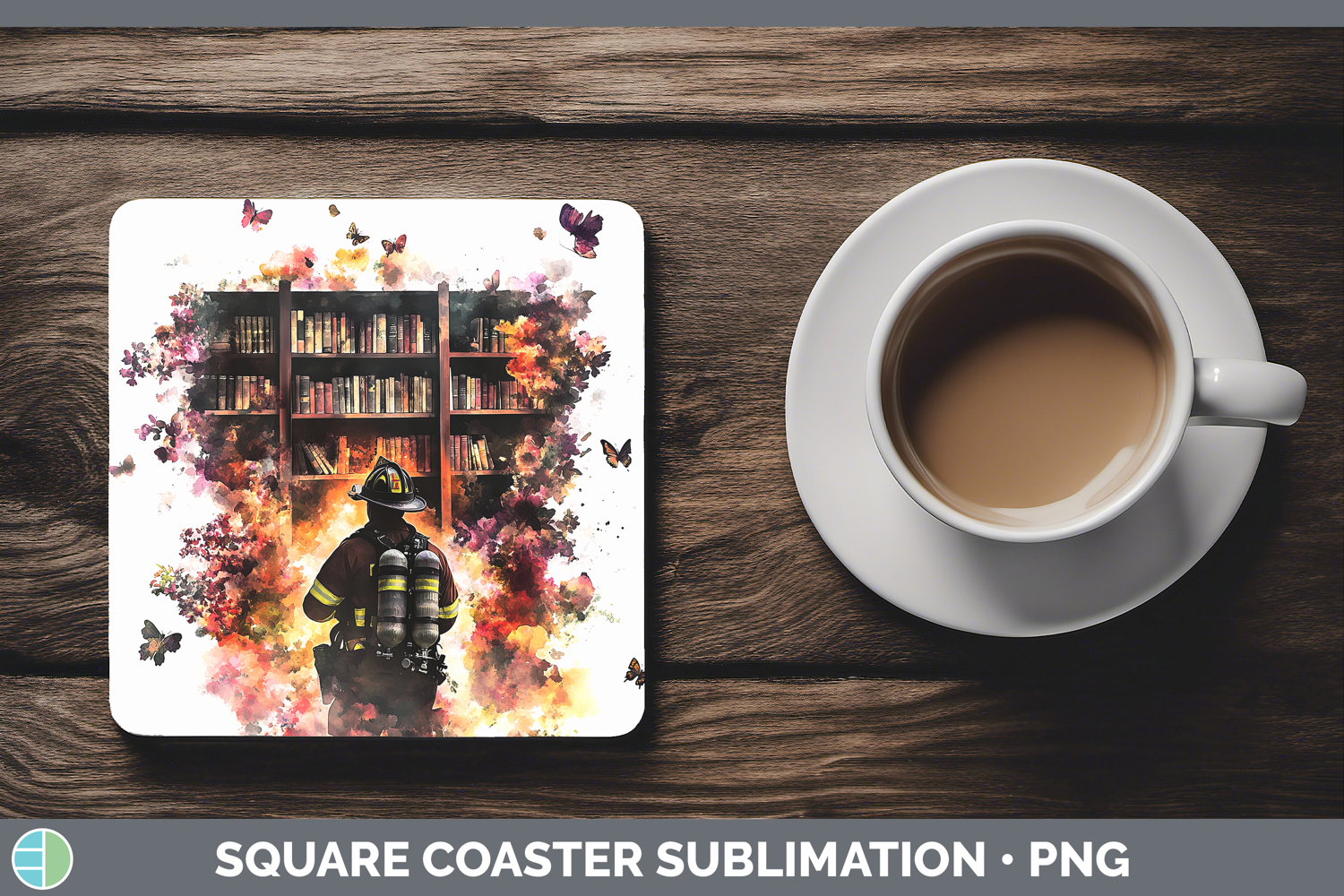 BS07 Bookshelf Male Firefighter Square Coaster Sublimation C
