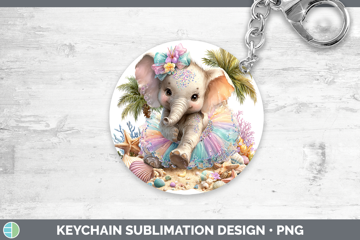 Animals Summer Beach Elephant Keychain Sublimation Keyring D