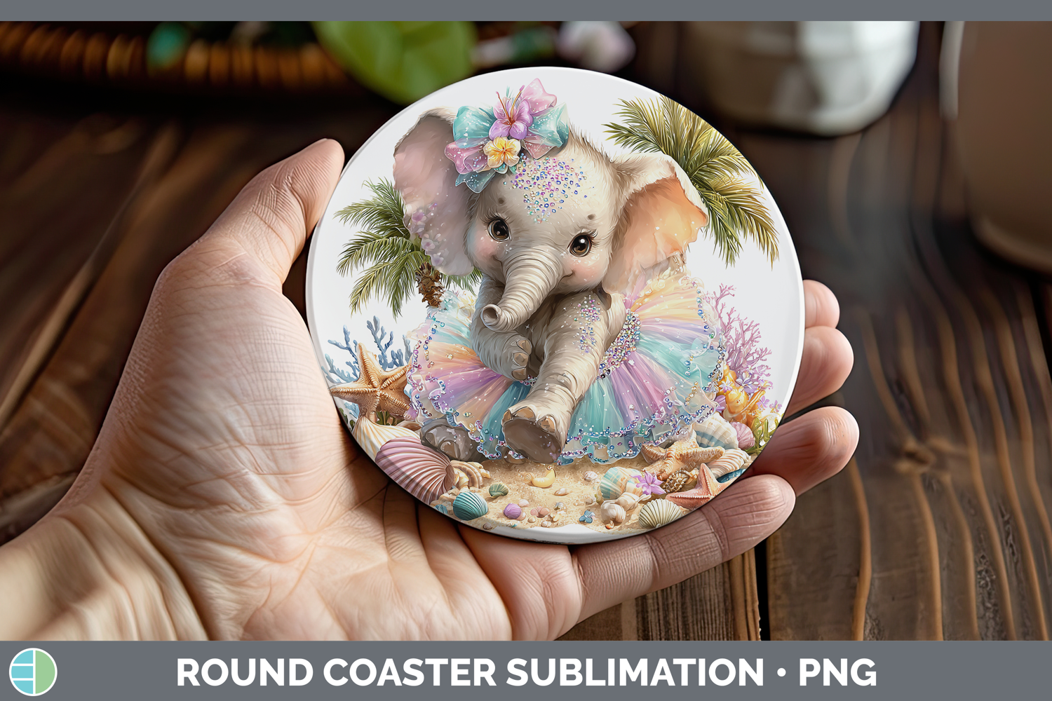 Similar Design Products to Animals Summer Beach Elephant Round Coaster Sublimation Coas