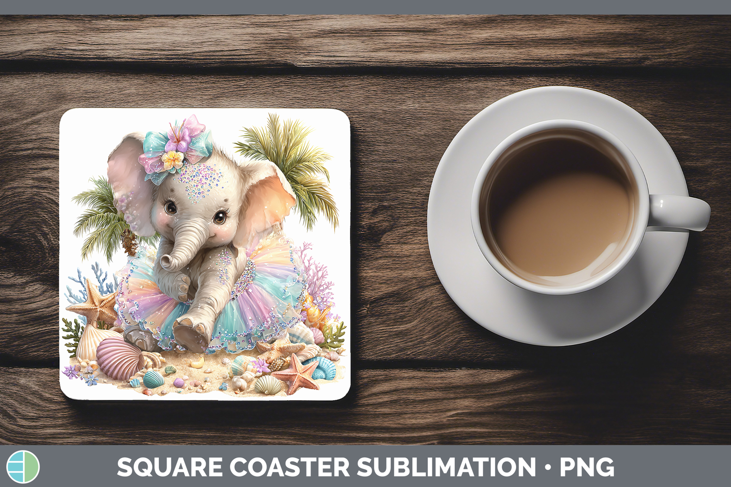 Animals Summer Beach Elephant Square Coaster Sublimation Coa