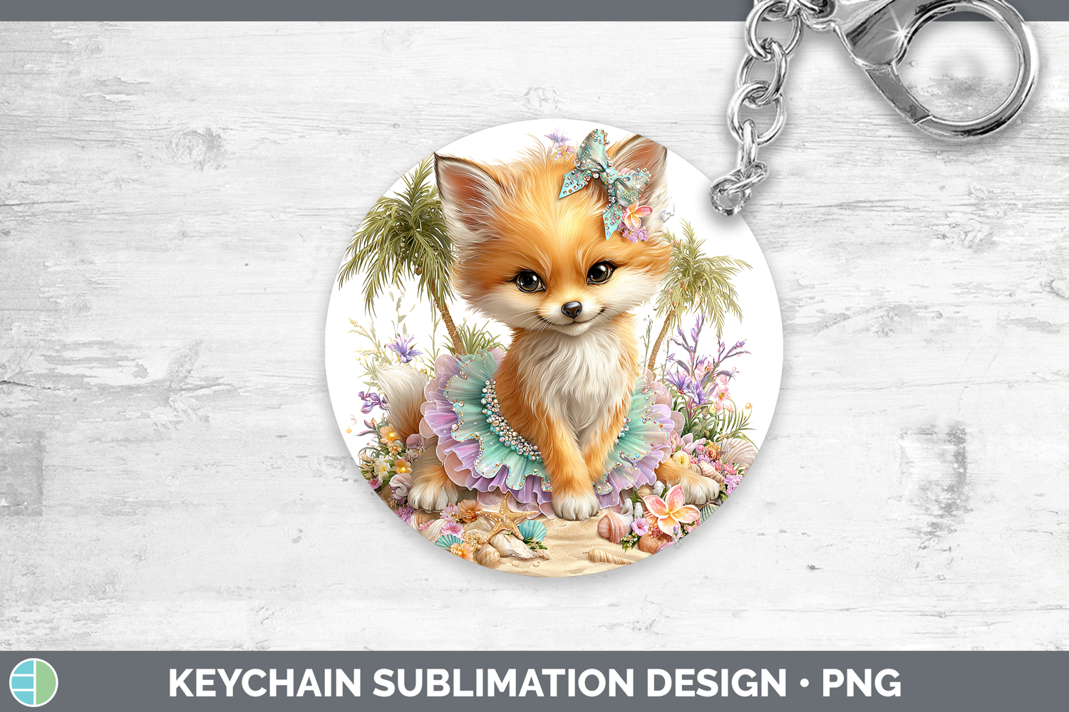 Animals Summer Beach Fox Keychain Sublimation Keyring Design