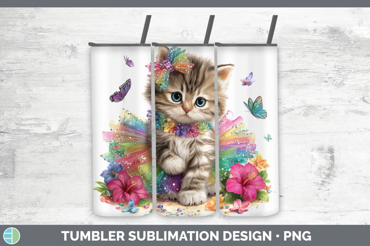 Animals Rainbow Summer Kitten Tumbler Sublimation 20 oz Skin