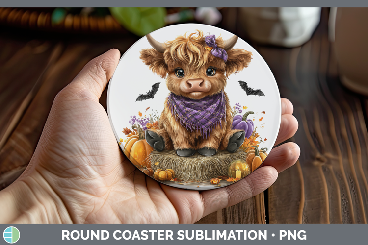 Similar Design Products to Animals Halloween Highland Cow Round Coaster Sublimation Coa