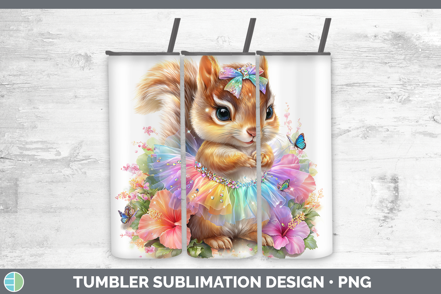 Woodland Rainbow Summer Squirrel Tumbler Sublimation 20 oz S