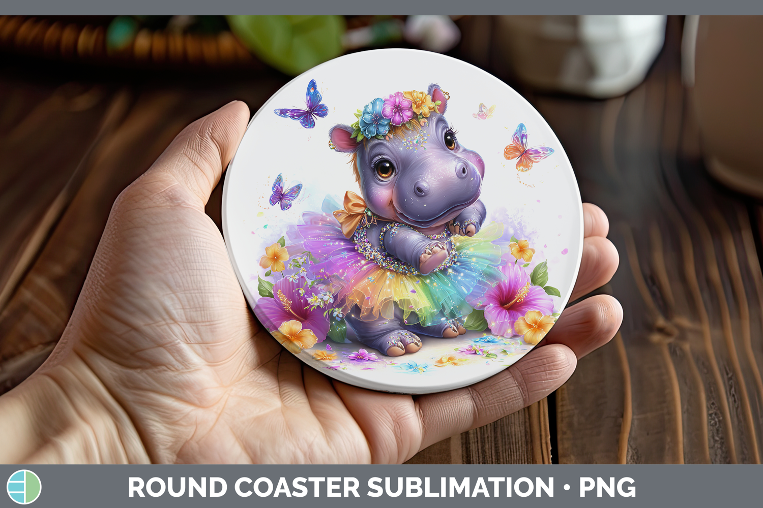 Safari Rainbow Summer Hippo Round Coaster Sublimation Coaste