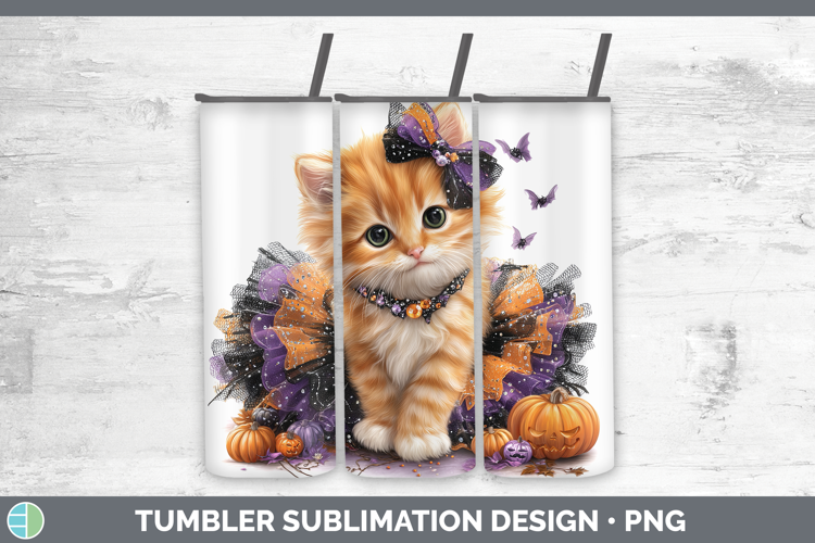 Cats Halloween Orange Cat Tumbler Sublimation 20 oz Skinny T