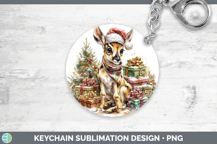 Safari Christmas Santa Antelope Keychain Sublimation Keyring