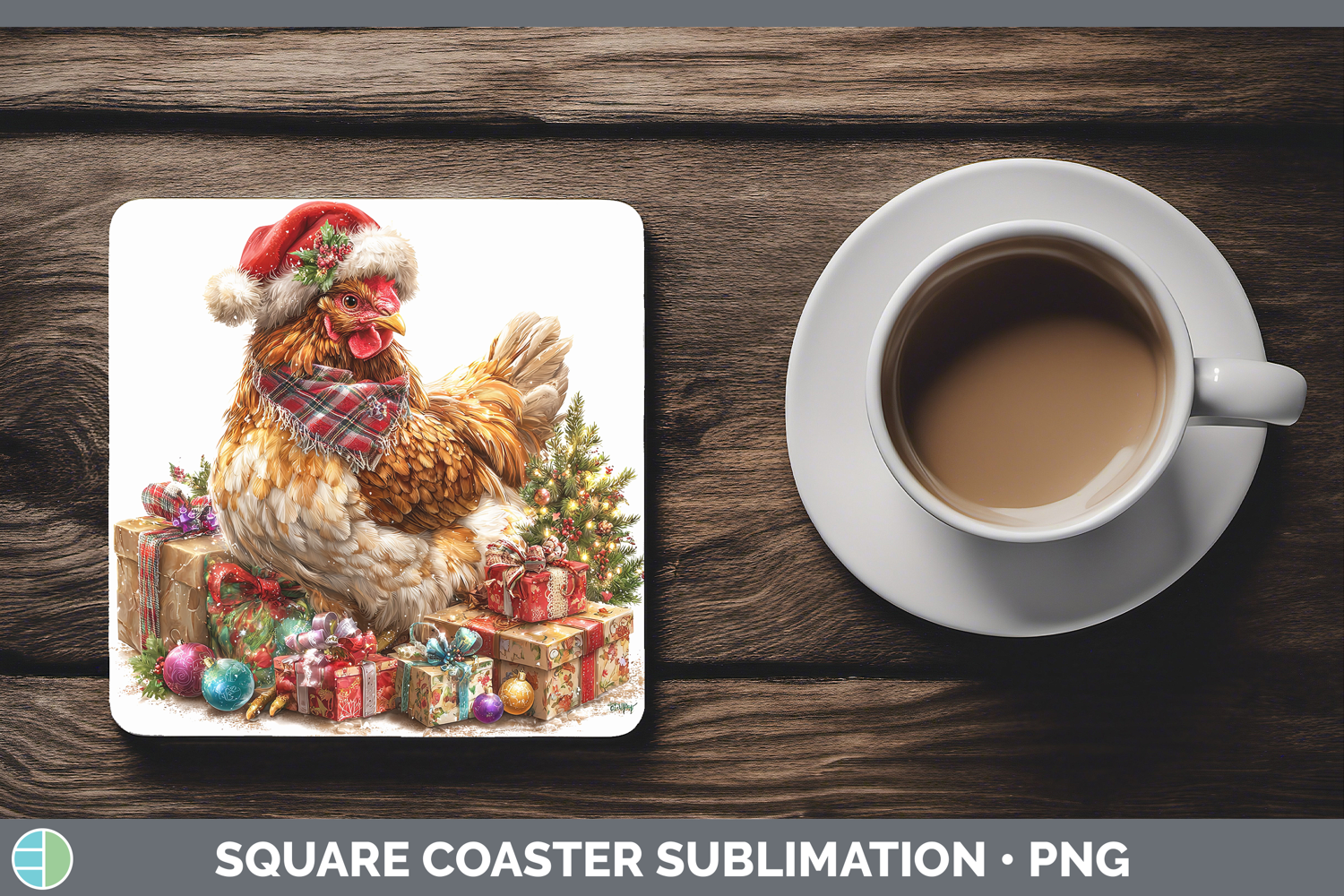 Farm Christmas Santa Chicken Square Coaster Sublimation Coas