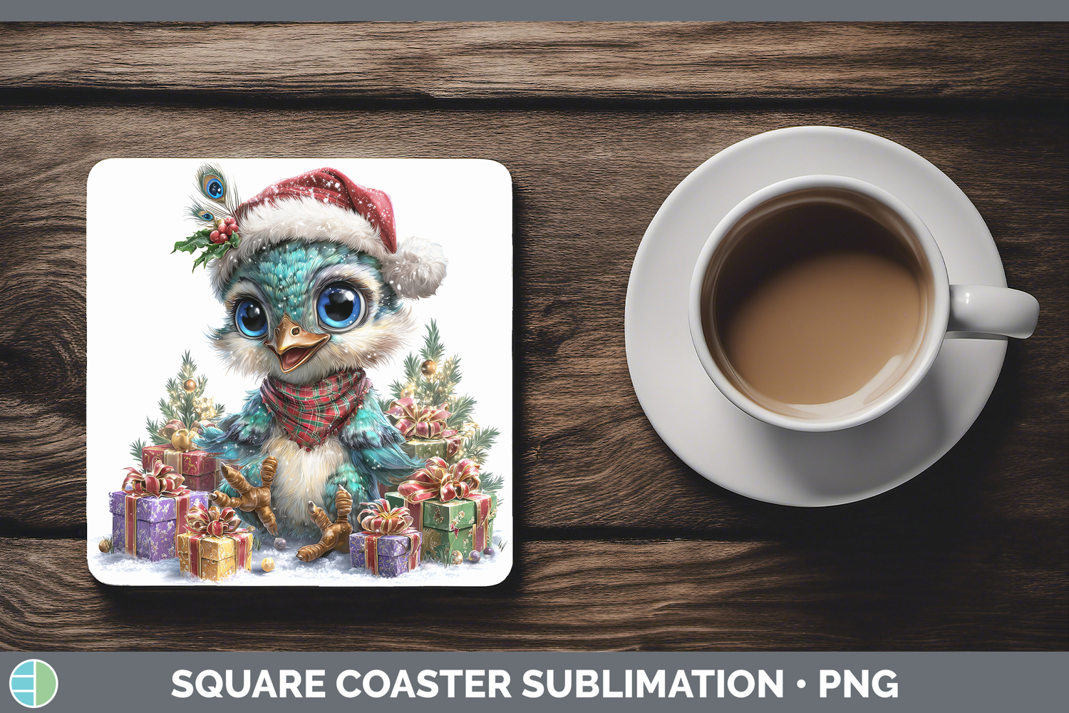 Farm Christmas Santa Peacock Square Coaster Sublimation Coas