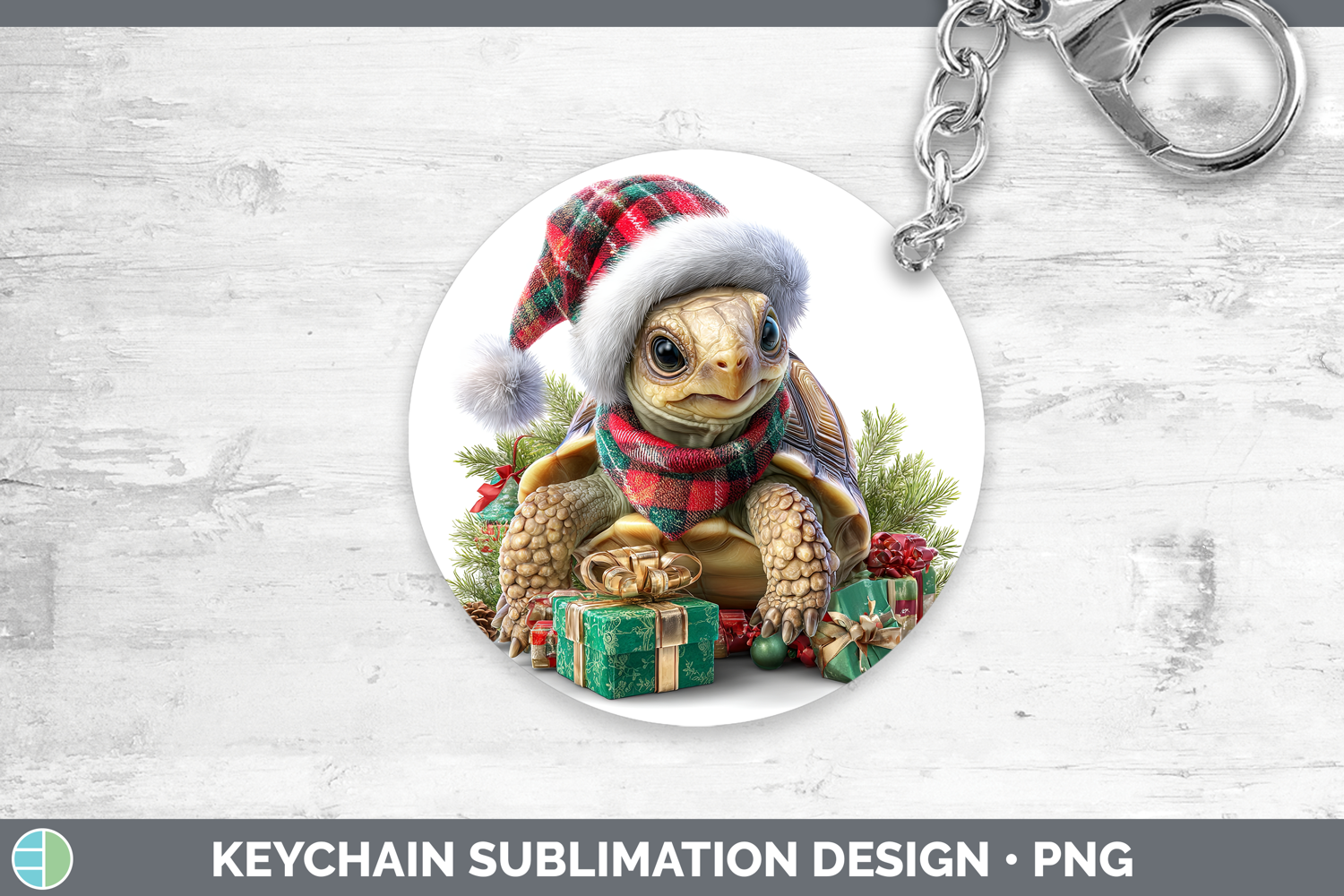 Farm Christmas Santa Tortoise Keychain Sublimation Keyring D