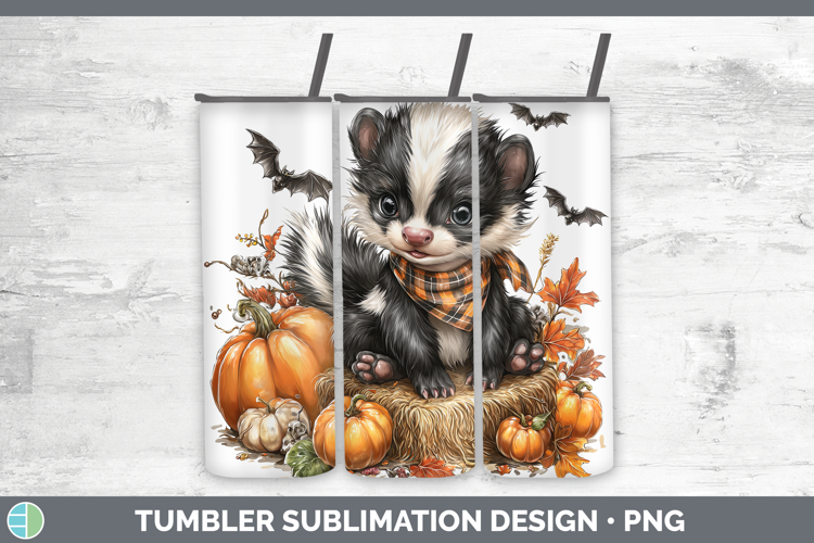 Woodland Halloween Skunk Tumbler Sublimation 20 oz Skinny Tu