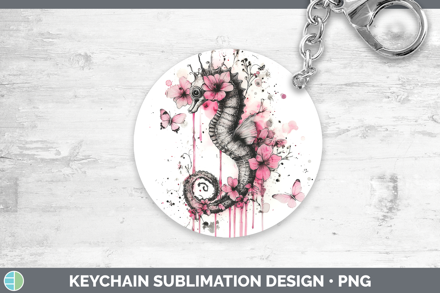 Similar Design Products to Best Sellers 04 Pink Drips Seahorse Keychain Sublimation Key