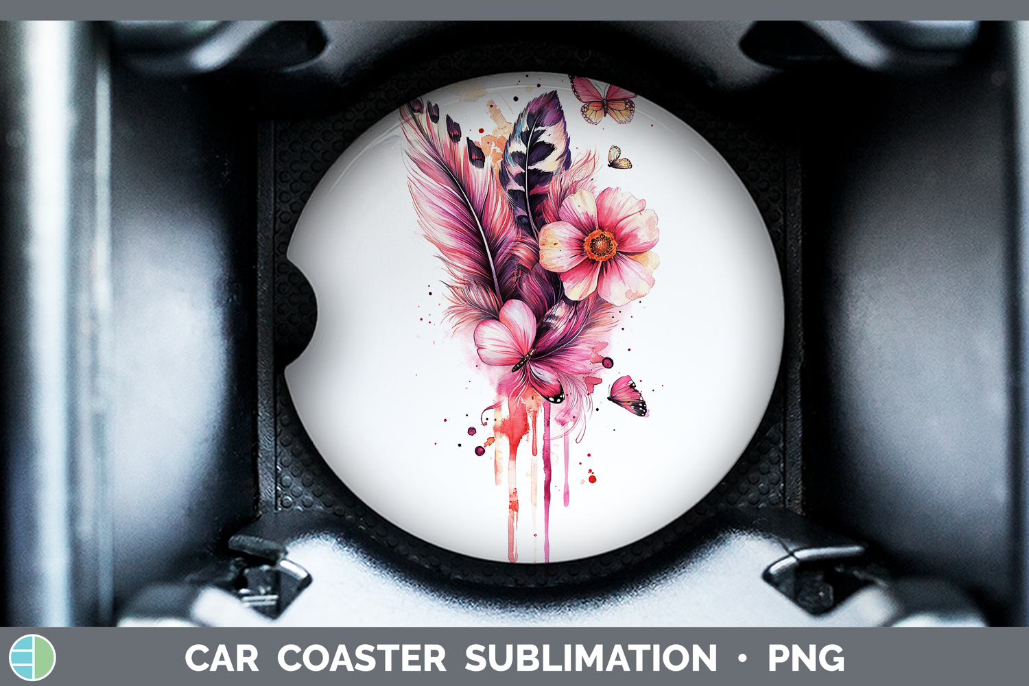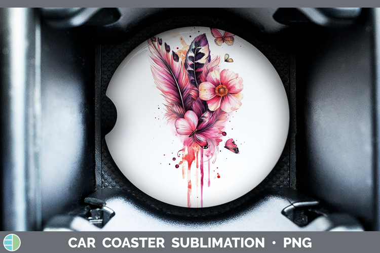 Similar Design Products to Best Sellers 04 Pink Drips Boho Feathers Car Coaster Sublima