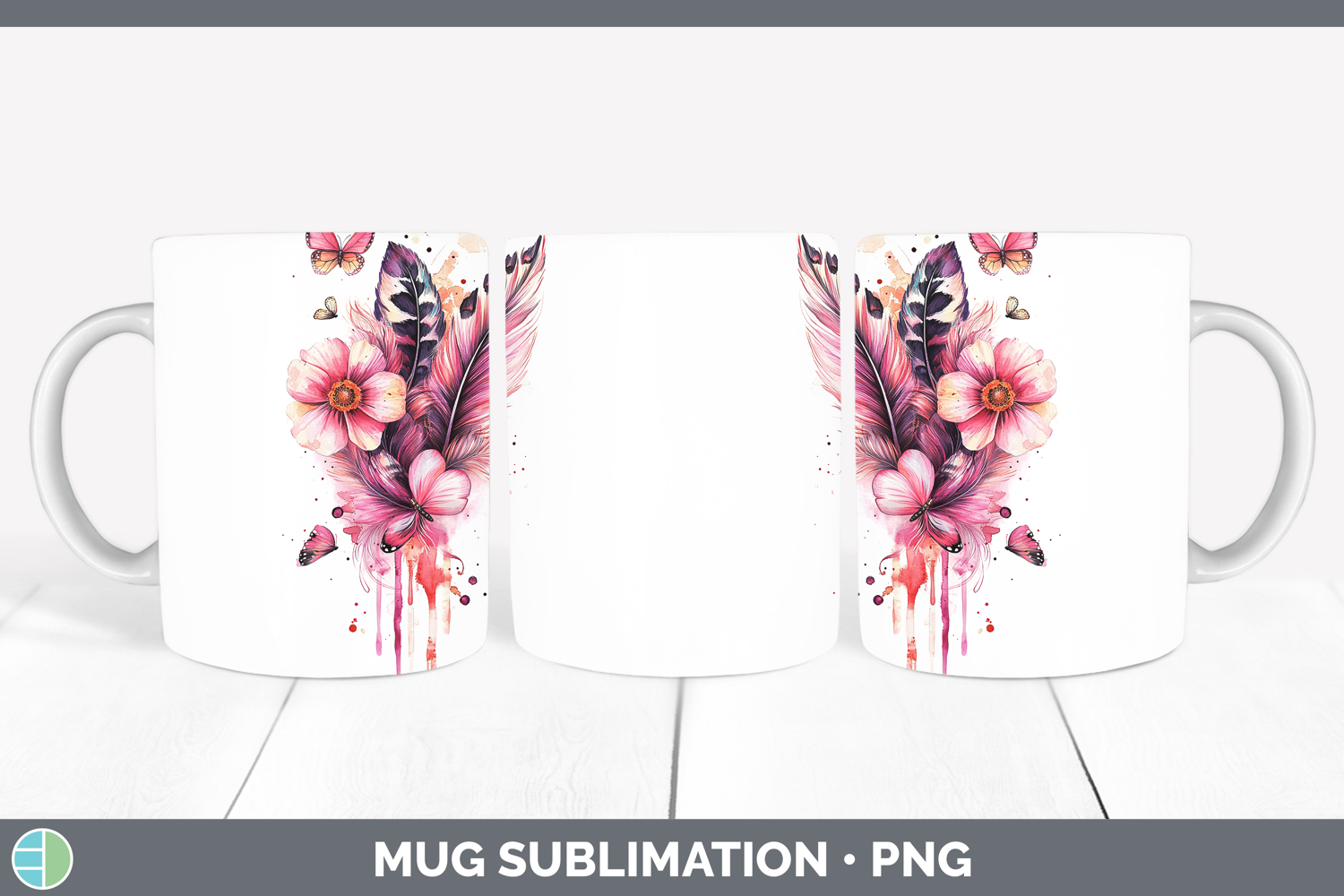 Best Sellers 04 Pink Drips Boho Feathers Mug Wrap Sublimatio