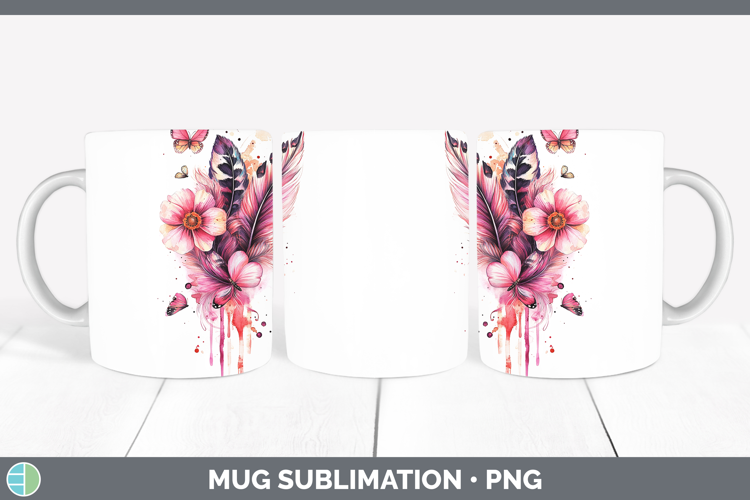 Similar Design Products to Best Sellers 04 Pink Drips Boho Feathers Mug Wrap Sublimatio