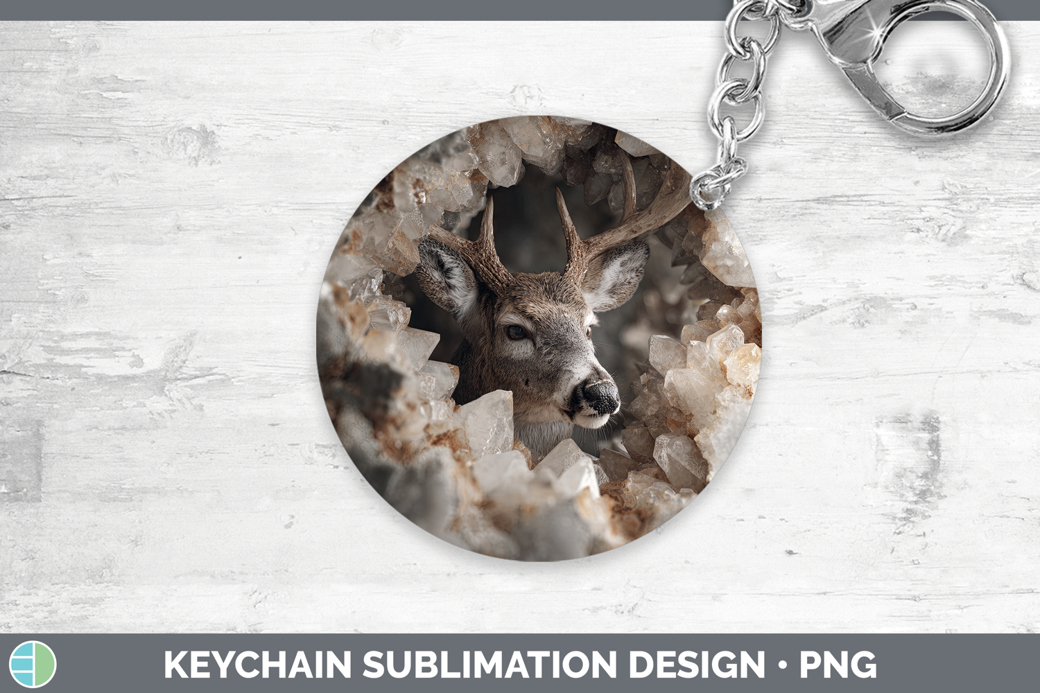 Woodland Geode Deer Keychain Sublimation Keyring Designs