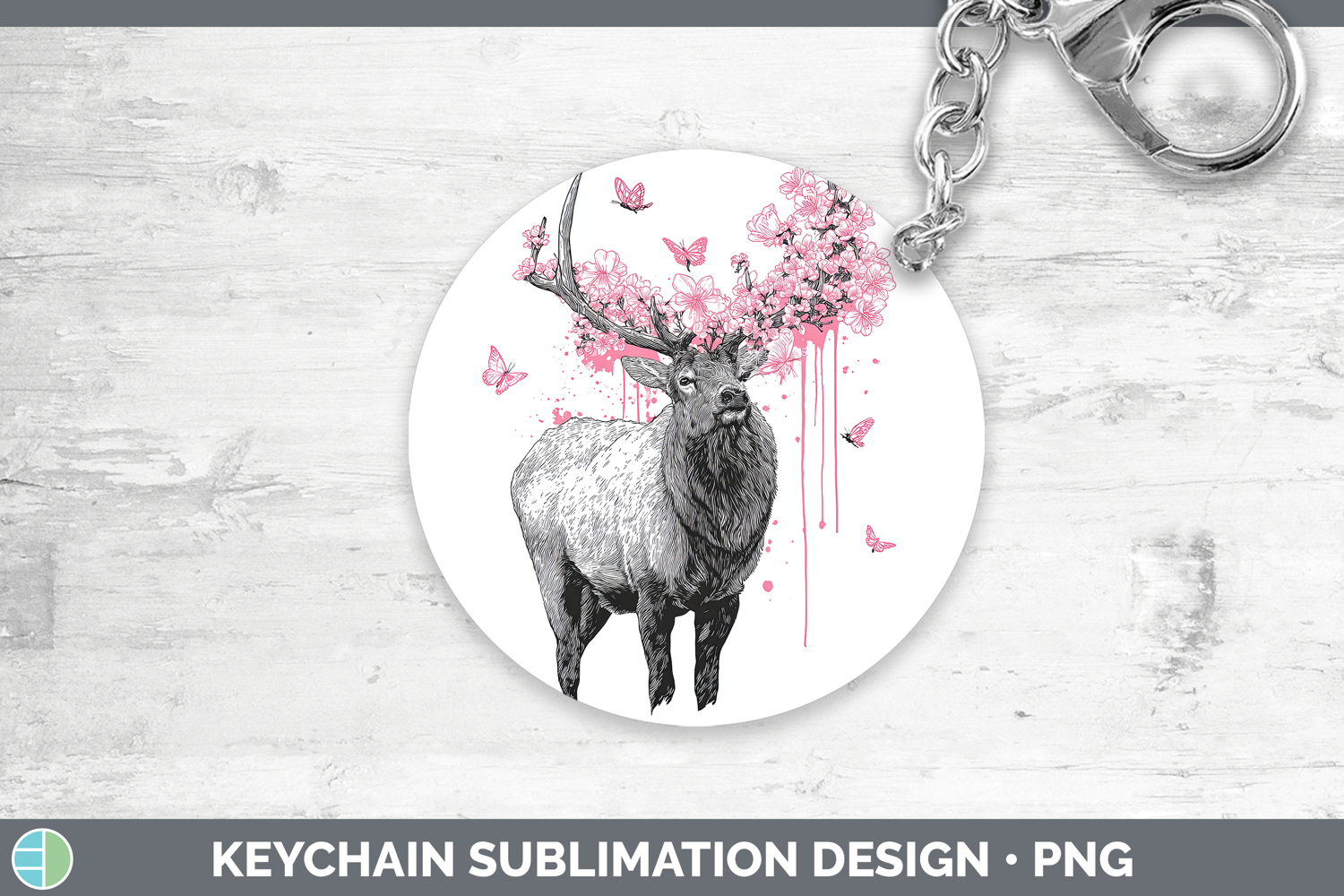 Woodland Pink Drips Elk Keychain Sublimation Keyring Designs