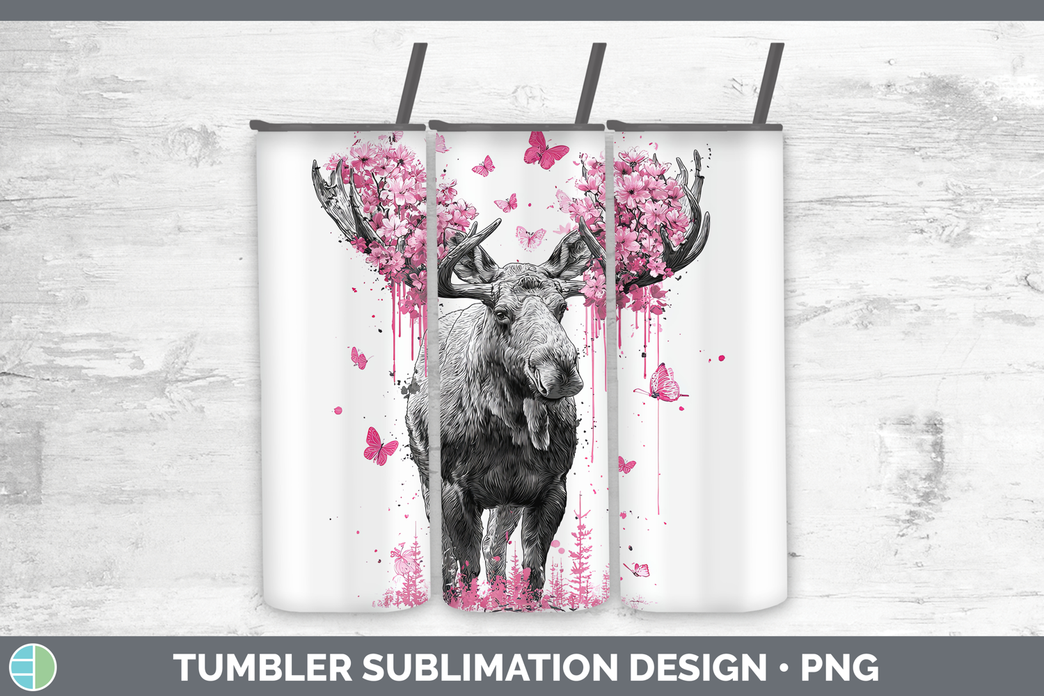 Similar Design Products to Woodland Pink Drips Moose Tumbler Sublimation 20 oz Skinny T