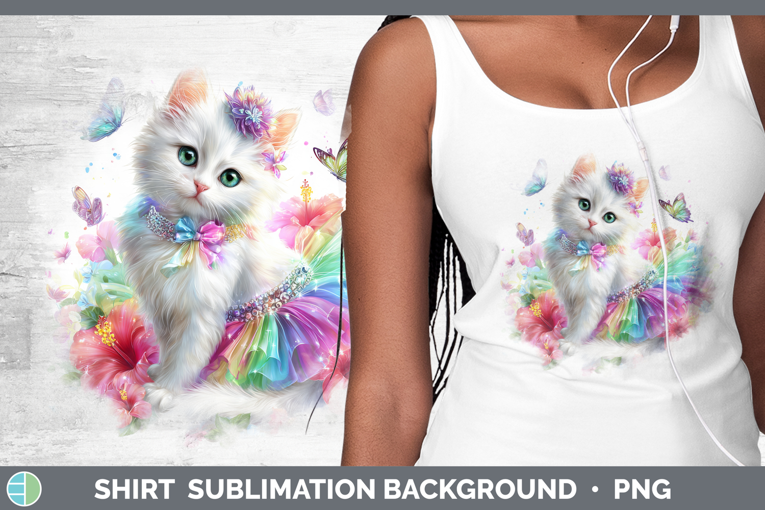 Cats Rainbow Summer White Cat Shirt Sublimation Background D