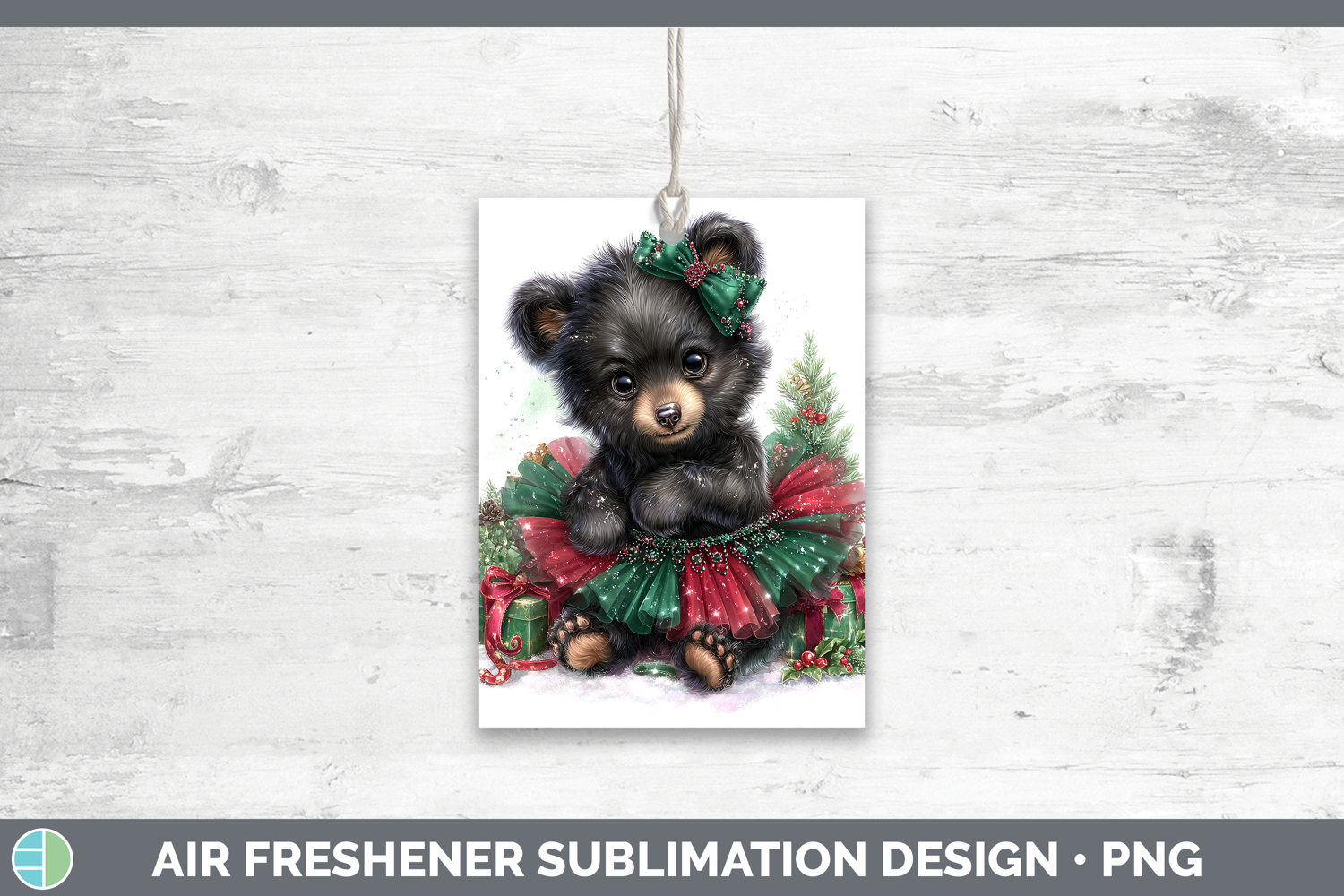 Woodland Cute Christmas Black Bear Air Freshener Sublimation
