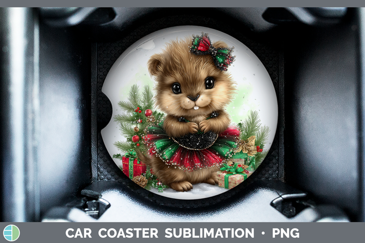 Woodland Cute Christmas Beaver Car Coaster Sublimation Desi
