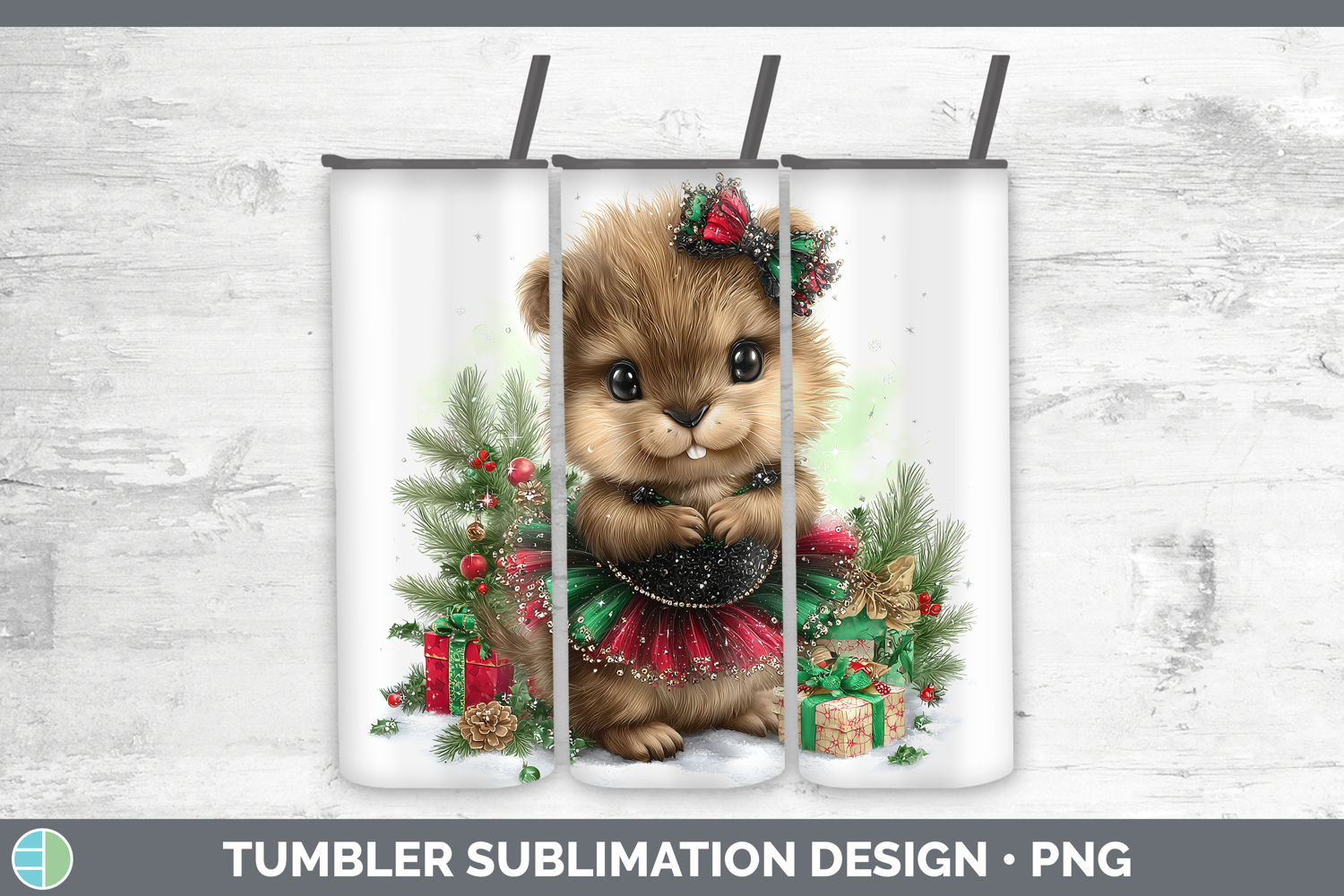 Similar Design Products to Woodland Cute Christmas Beaver Tumbler Sublimation 20 oz Ski