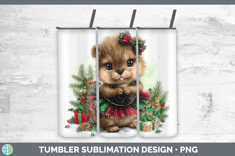 Woodland Cute Christmas Beaver Tumbler Sublimation 20 oz Ski