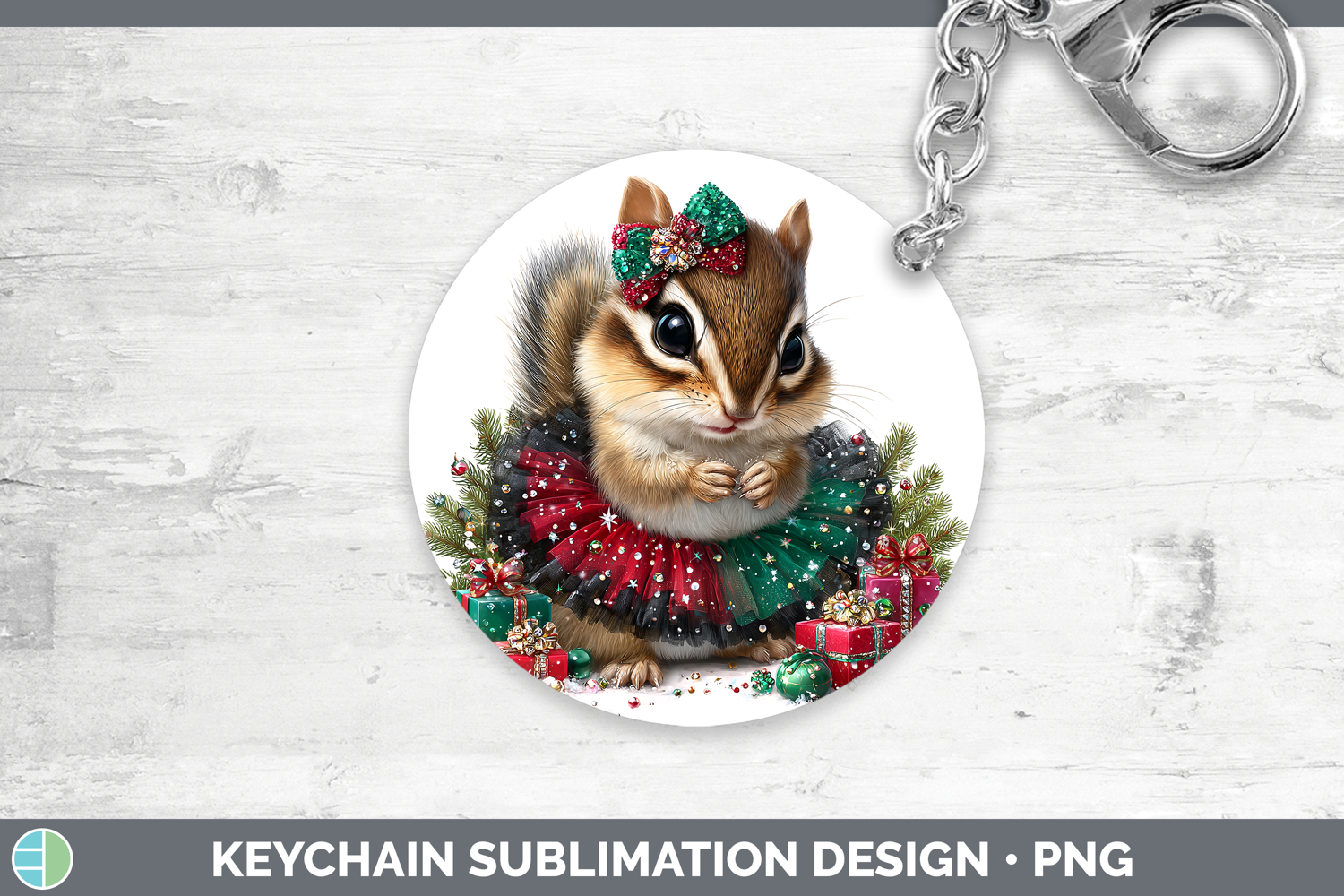 Woodland Cute Christmas Chipmunk Keychain Sublimation Keyrin