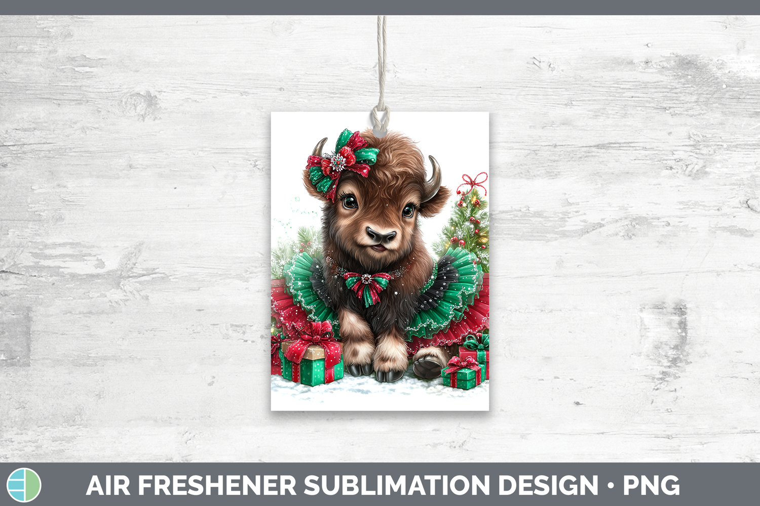 Woodland Cute Christmas Musk Ox Air Freshener Sublimation Ca