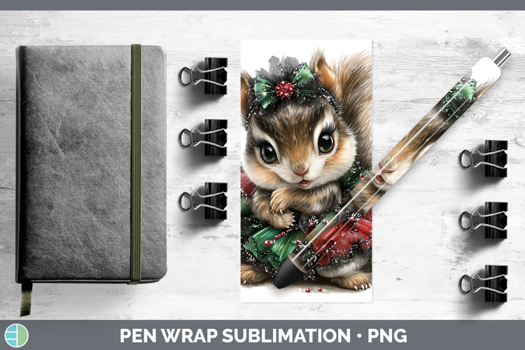 Woodland Cute Christmas Squirrel Pen Wrap Sublimation Pen De