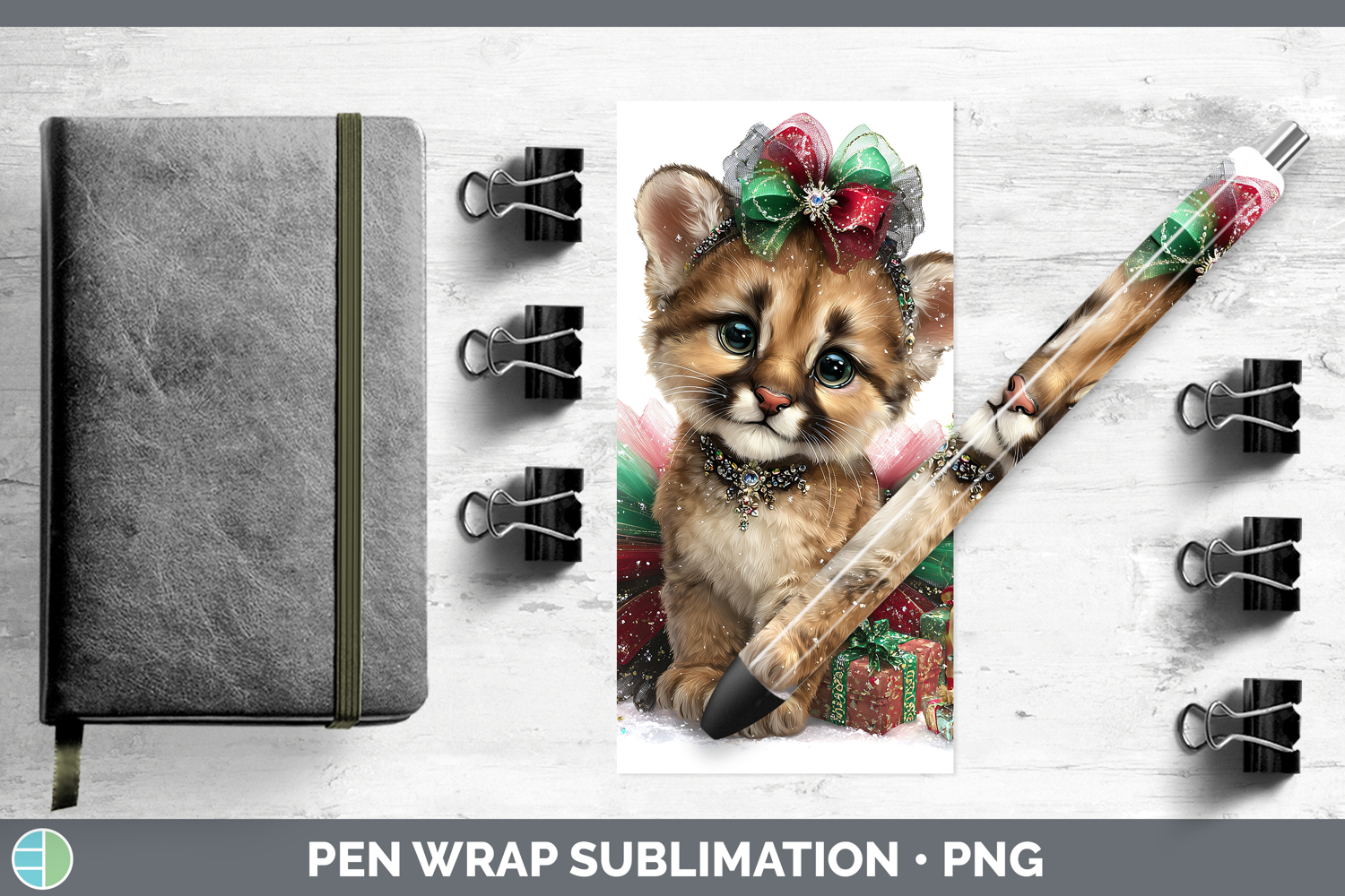 Woodland Cute Christmas Cougar Pen Wrap Sublimation Pen Desi