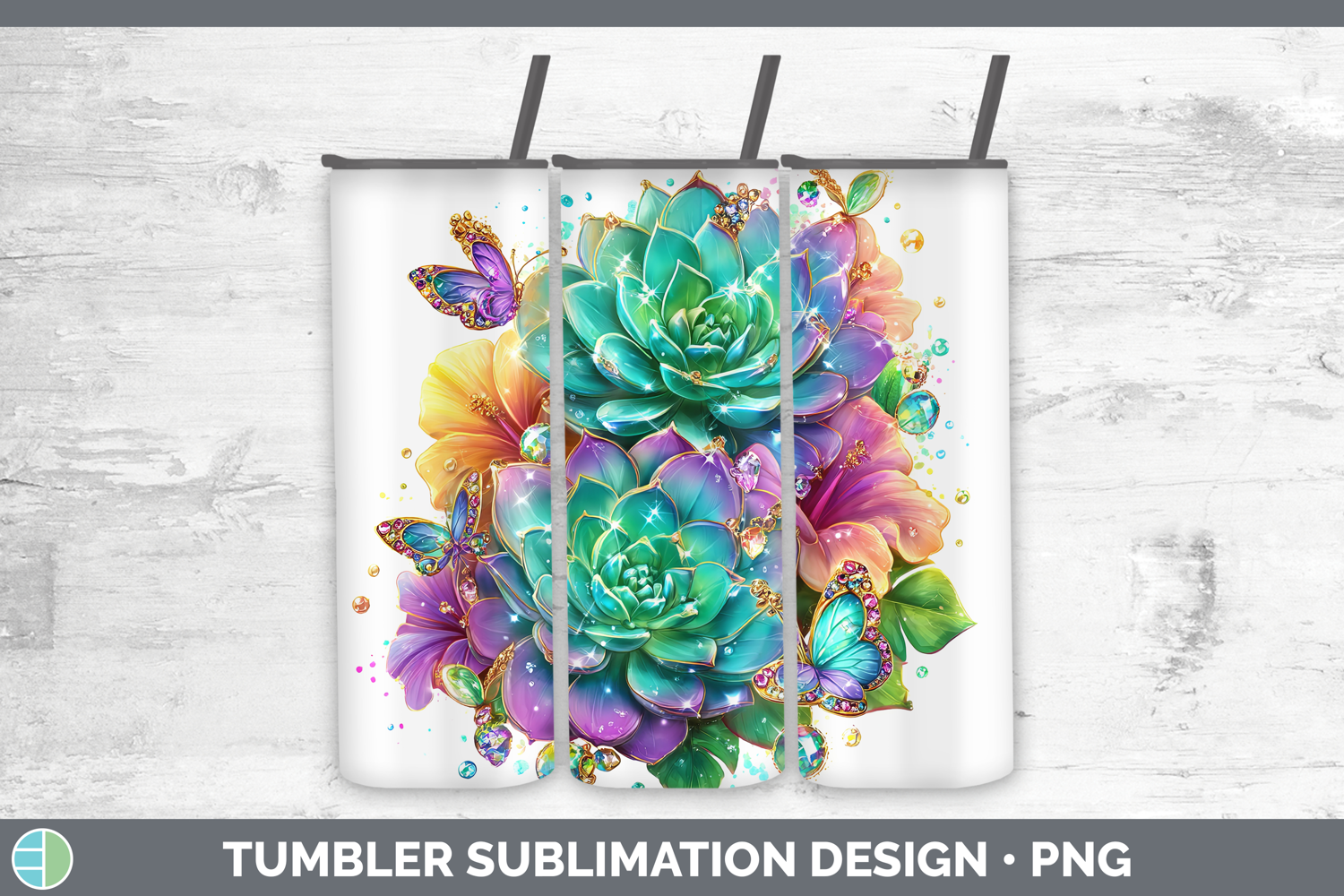Best Sellers 02 Rainbow Summer Succulents Tumbler Sublimatio