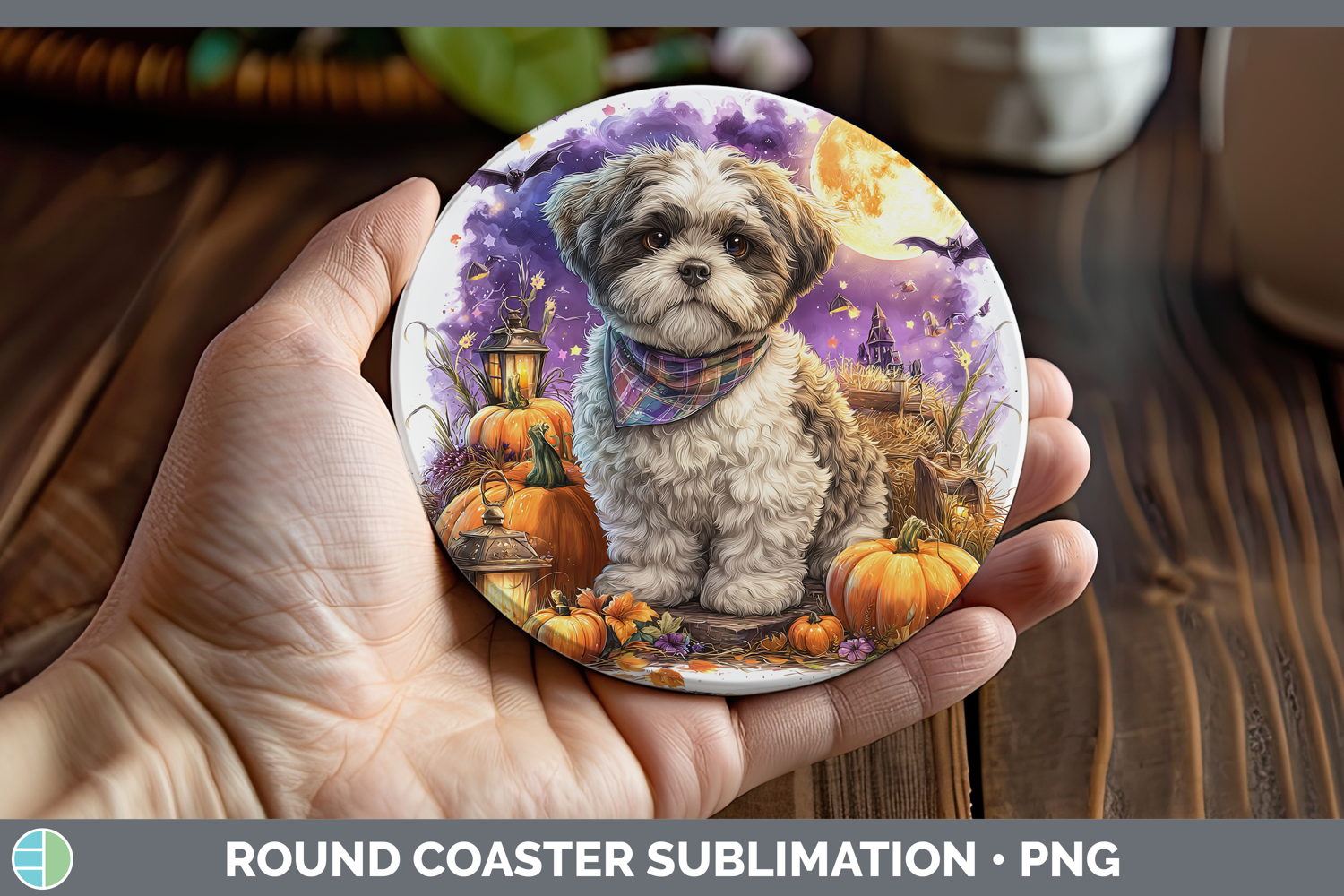 Dogs 02 Bandana Halloween Shih Tzu Round Coaster Sublimation