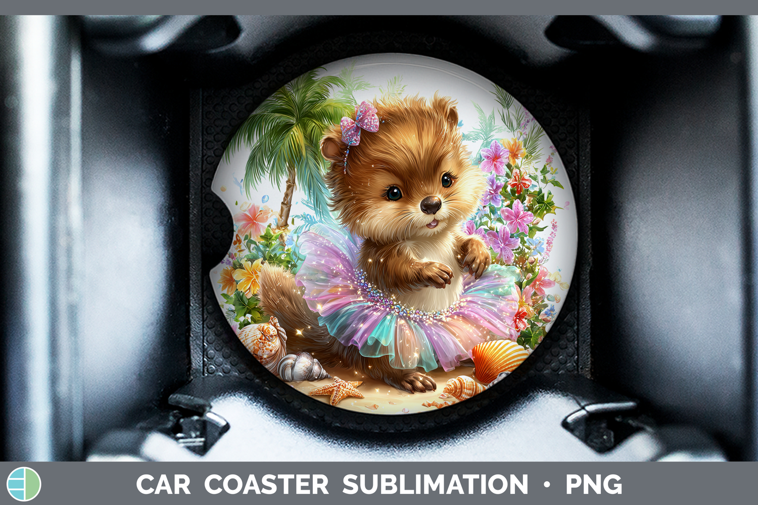 Woodland Summer Beach Beaver Car Coaster Sublimation Design