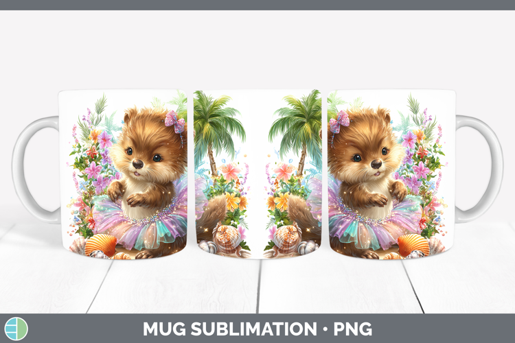 Woodland Summer Beach Beaver Mug Wrap Sublimation Coffee Cup