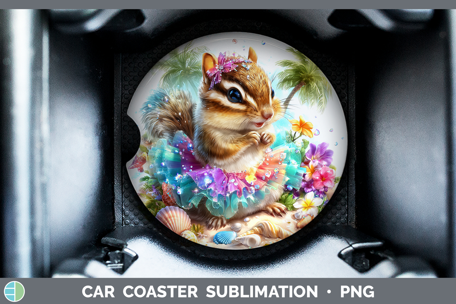 Woodland Summer Beach Chipmunk Car Coaster Sublimation Desi